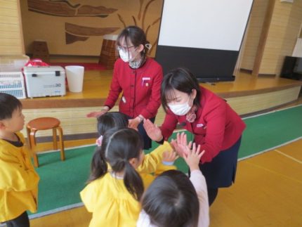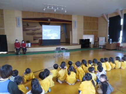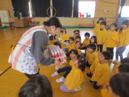 岩手ヤクルト工場のお姉さん方が来園し、ヤクルトができるまでのお話やDVDを見せてくれました(^^♪