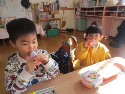 頂いたヤクルトは、給食時間にみんなでごちそうになりました。「ヤクルトって、体の悪い菌をやっつけてくれるんだね!」