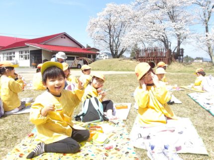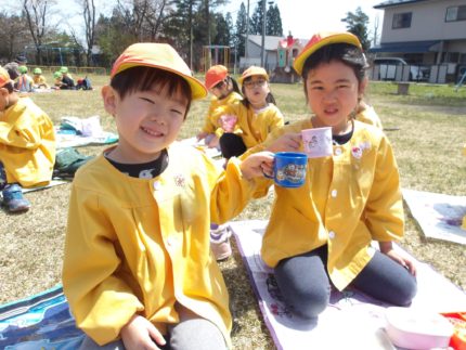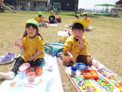 みどりくみとあかくみは、園庭でピクニックごっこ♪